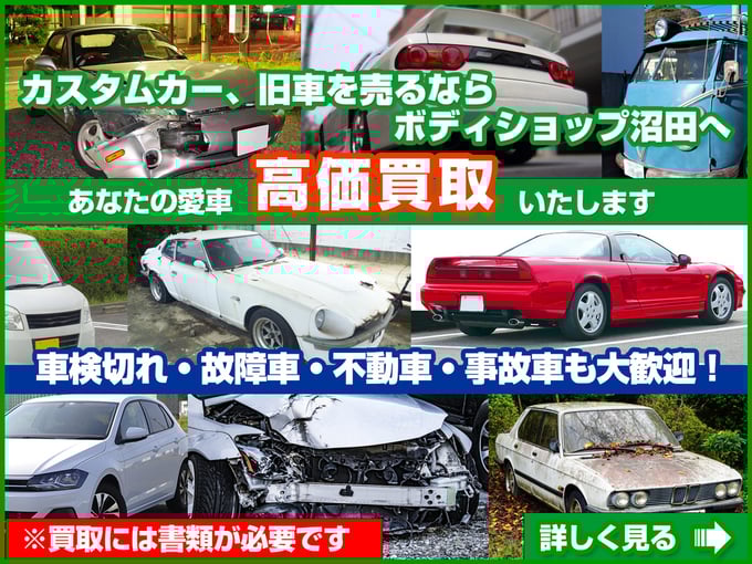 車両の買取もボディショップ沼田お任せください! 思い入れのあるあなたの愛車を高価買取いたします。