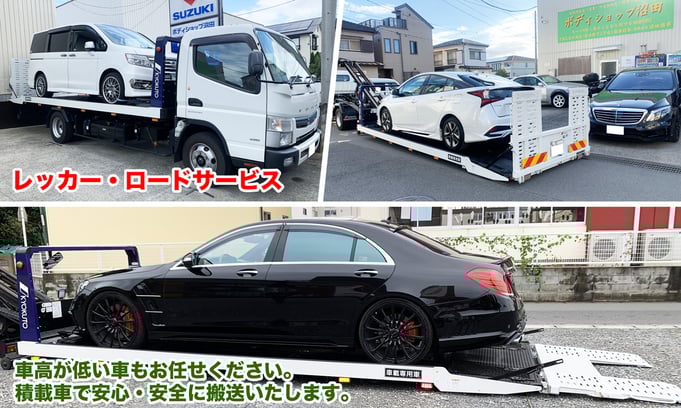 事故車・故障車・不動車など車両の搬送、また、解体車の引取りをはじめ、落輪・脱輪・スタック救援、出張修理はボディショップ沼田にお任せください。